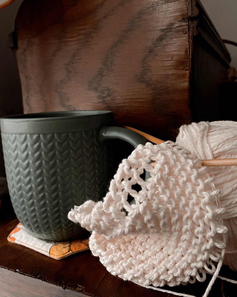🧶The plan was to spend the weekend knitting cotton dishcloths that I will include in extended family Christmas gift baskets this year. I knit … two.